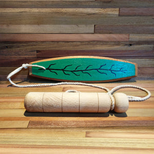Key Features: Woodturned handle to make spinning it easier. On primitive models spinning can get fast enough to cause burns ! • Super handy case to store your bull roarer. Hand Painted on one side to increase mystical effectiveness!!