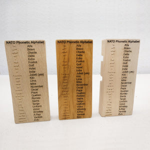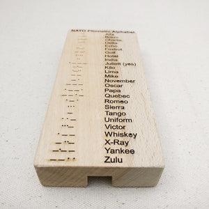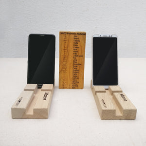 A for Ara, S for Shravanabelagola, T for Tiruvananthapuram, B for Bahraich....had enough of dictating these over the phone? Switch to something truly international. Had enough of flimsy plastic junk? Especially the ones that look like the recliners from period movies?! Check this ultra-minimalist, all solid wood smart phone holder that incorporates the NATO Phonetic Alphabet that the whole world uses for communication. (ATC, Maritime, Spacecraft...)